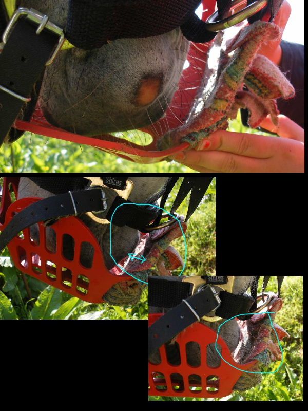 | Dire merci | FunnyBreton, ma 2nd muselière est normalement pour les chevaux mis à la diète j'ai moi même fait un trou en dessous pour qu'il puisse brouter, mais je préfère le greengard, parce que l'autre n'est pas très large et pour machouillé il a plus de mal.![]() |