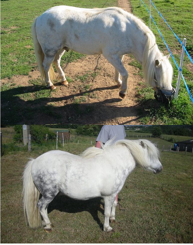 DéconnectéDire merci | Bah,si le poney fourbu. mais comme il pète les clotures j'ai as envie de passer mon temps à courir après , les voir s'empiffrer et refaire les clotures. De + le poney ne bouge pas non plus, et le parc est tout petit donc ça ne servirait pas à grand-chose. Enfin quand Lotus était avec son hyperdominant tortionnaire dans le pré à vaches ça ne les empêchait pas d'être obèses tous les 2... Avec 8 ha de bonne herbe c'est pas des chamailleries qui les font maigrir ![]() |