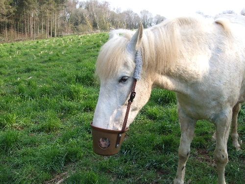 | Dire merci | J'ai un souci, trop d'herbe et j'ai un poney trop gras, médicalement cela devient dangereux pour lui de manger autant. Nous avons eu en prêt un panier en plastique, modèle commun que l'on voyait il y a quelques années pour empêcher un cheval de manger au box. C’est un modèle en plastique, il est fixé sur un filet, par contre les gros trous rond en dessous, il est peut-être monté à l’envers le mien ? Les gros trop ronds sont bien à mettre au niveau des naseaux non ? ![]() ![]() Ce sont des photos de noémmie, mon modèle ressemble au sien, par contre une question, le cheval arrive t-il à manger un peut quand même avec ça ? |
