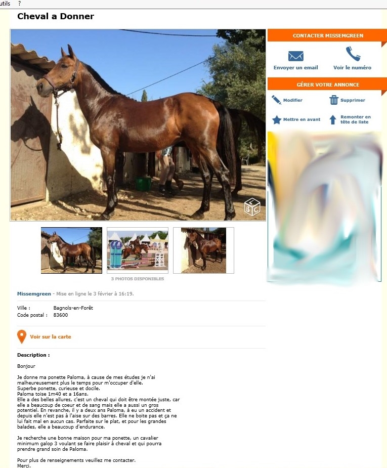 | Dire merci | RRRHHHOOO!....conny T'as craqué!!!! Du coup, il a retiré l'annonce. Message édité le 04/02/16 à 12:35 |