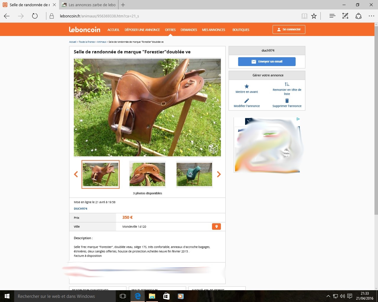 | Dire merci | Ha!...Les prix montent! De 350€ pour la selle Forestier, on passe a 500€ ![]() Lien |