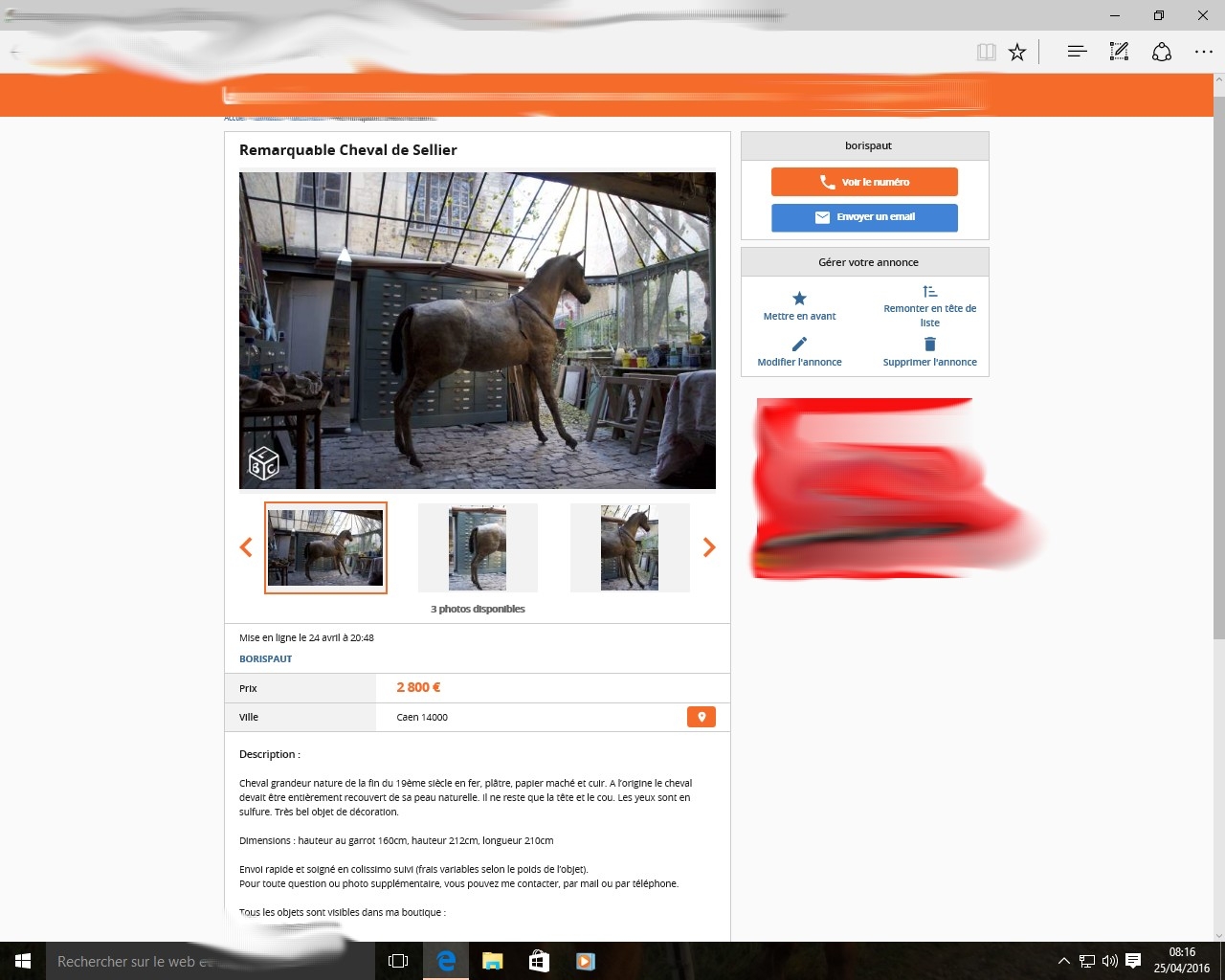| Dire merci | Lien 1000 euros la jument de 21 ans demi-TF, bon, déjà ... ça vend du rêve !! Mais le bridon, ça mérite un Oscar 😈😈 [url=http://img11.hostingpics.net/pics/995403Capture.jpg" class='zoombox zgallery3357689' ] [/url]Message édité le 15/04/16 à 22:50 |
