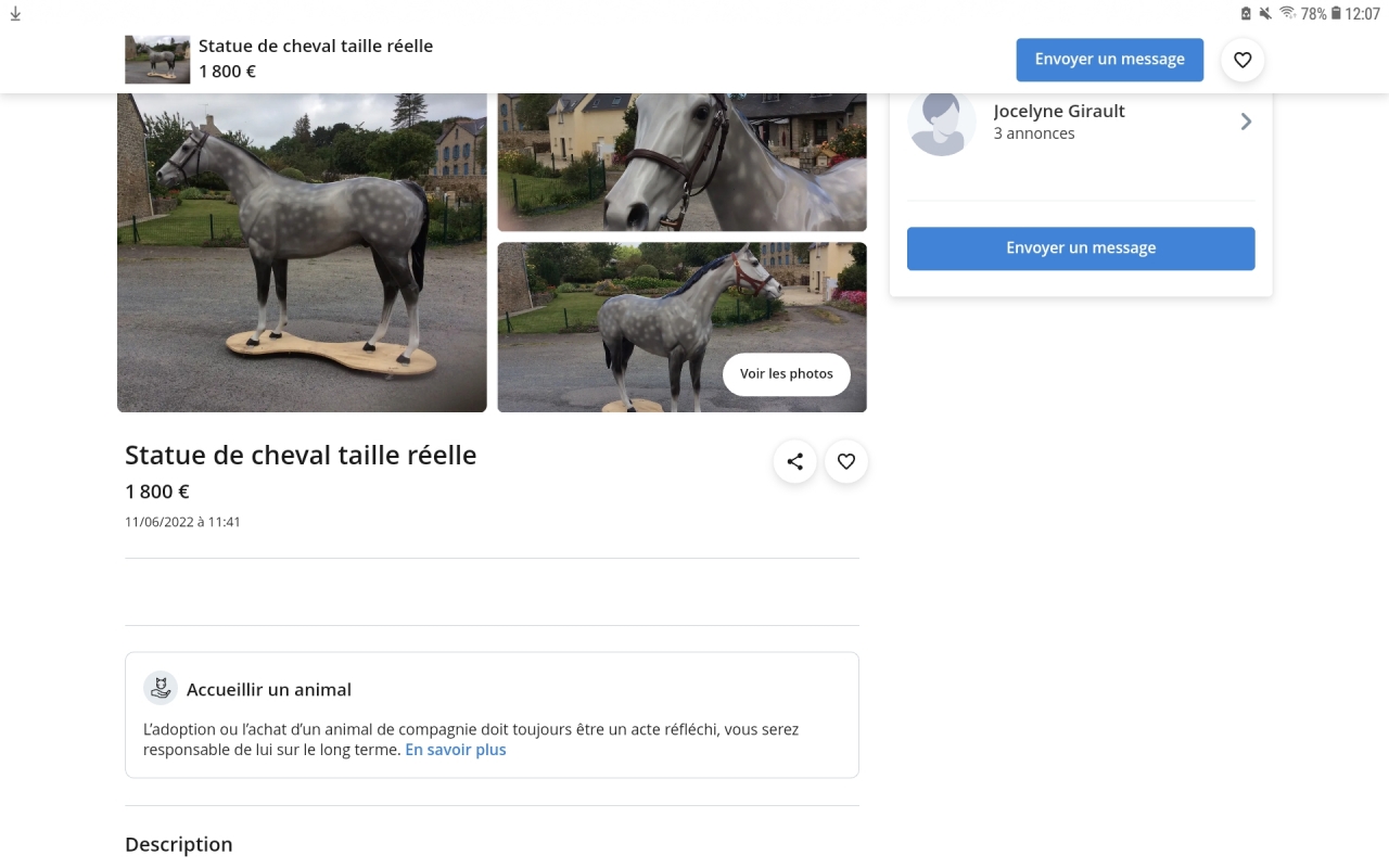 | Dire merci | Même s'il est un peu mal foutu liteulorce je ne crois pas que ça impactera sa santé à long terme. Plus sérieusement y'en a qui devrait prendre ça pour décorer au lieu d'acheter des animaux dont ils ne s'occupent pas correctement ensuite. Je met en capture d'écran au cas où l'annonce disparaisse pour comprendre les réponses. ![]() |