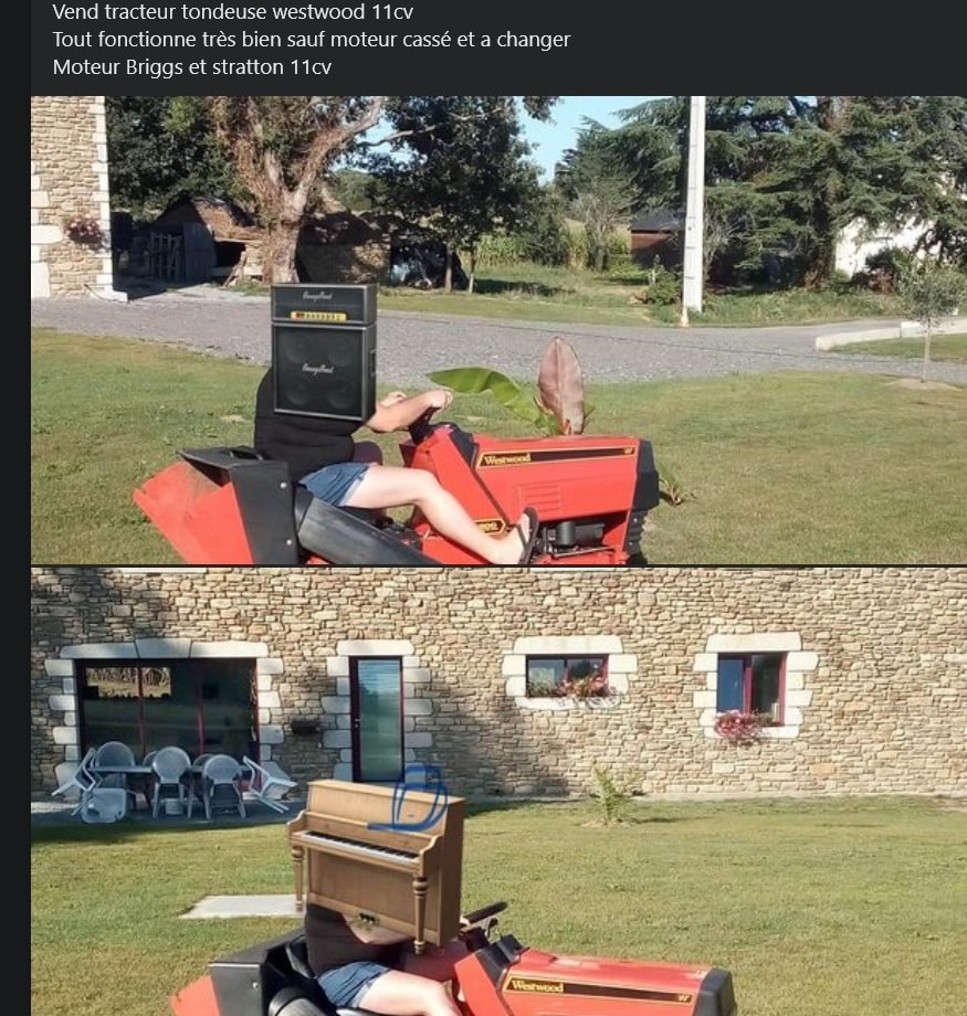 | Dire merci | Tiens, j'ai pensé à ce post en me connectant sur fb ce matin Ce n'est pas leboncoin mais marketplace "Tout fonctionne très bien sauf le moteur", quelle affaire ![]() |