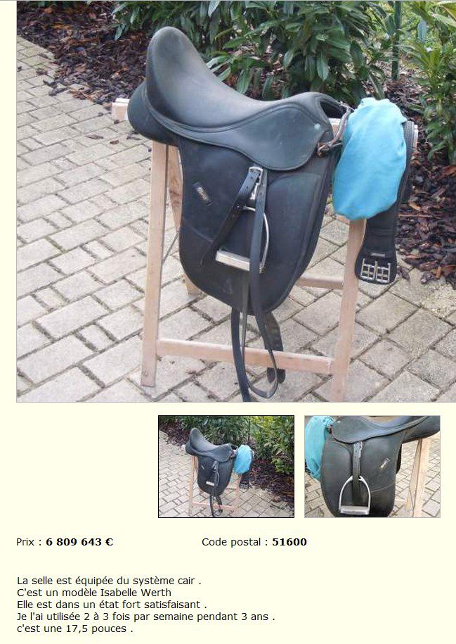 | Dire merci | une annonce banale quoi c'est vrai que c'est chercher un peu la petite bete pour rien , surtout que le cheval doit pas vraiment vous interesser ... ou je me trompe? |