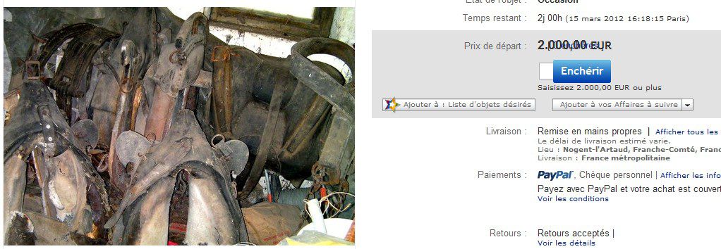 | Dire merci | Bon après il faut reconnaitre que le vendeur est aussi mauvais photographe qu'il maîtrise l'orthographe! Quand on a un cheval quelque peu léger, il y a des angles qu'il vaut mieux éviter pour prendre une photo. et mieux vaut pas de photo qu'une photo dévalorisante. |
