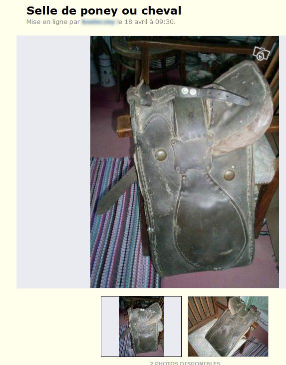 Dire merci | ça voudrait dire qu'il l'a payée dans les 30 000 francs de l'époque... je sais qu'une selle camargue est entièrement faite main, que c'est assez onéreux pour cette raison, mais 30 000 francs, je crois qu'il a vu la vierge... |