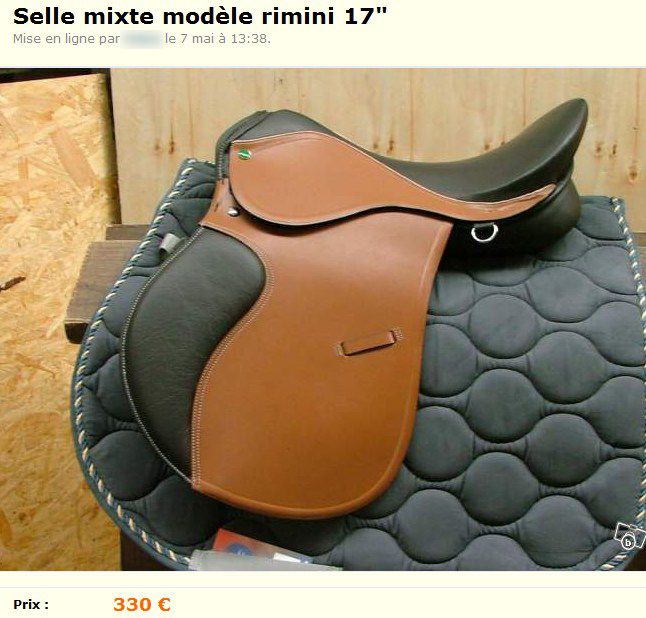 | je sais que les prix sont libres mais là c'est encore une arnaque, la selle est vendue 169,90€ sur ebay et là le vendeur fait croire qu'il l'a acheté 350€. Qui va se faire pigeonner ?