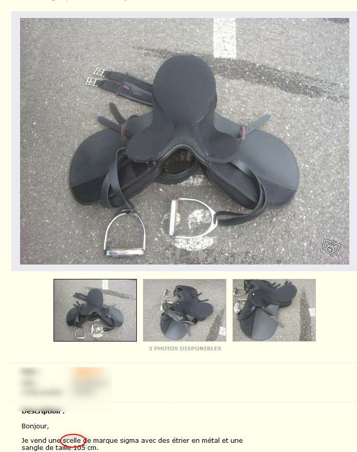 Déconnecté | manzana, sur ton lien, c'est moi ou la selle est beaucoup trop en avant ? Et puis pour le francais, je mentirais si je dirais que les gens savent leur francais correct comme même. |