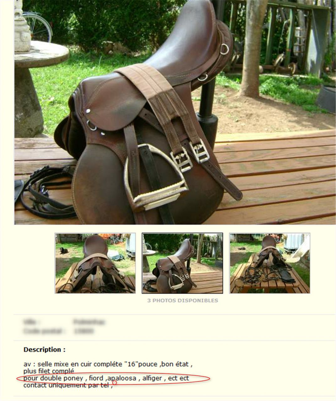 | +1 gishouw ... sans etre méchante, y en a qui n'ont que ca à faire que de trouver toutes les fautes sur leboncoin? j'aime bien ce post car on voit des annonces originales (que ce soit un prix excessif, un cheval particulier...) mais se retrouver avec 10 annonces par page qui concernent juste l'orthographe, c'est gonflant finalement...  |