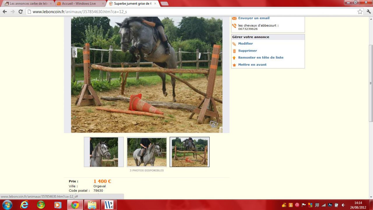 | Dire merci | En réponse à mon annonce de saillie : Lien J'ai eu : M.J : bonjours je voulais savoir si eyant mon galop 2 je pouvais le monter Moi : Nous vendons des saillies de notre étalon, pourquoi voudriez vous le monter? M.J : bah parce que je recherche un cheval et puis je suis tomber sur celui la alors ses quoi que vous vender a 250 euros Moi : Son sperme... Mon annonce elle n'est pas clair ?? |