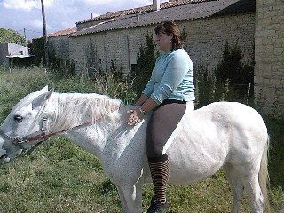 | Dire merci | et moi grand tortionnaire je monte sur un poulain de 3 ans.... la grosse qui monte sur le pauvre petit poulain pas musclé ![]() |
