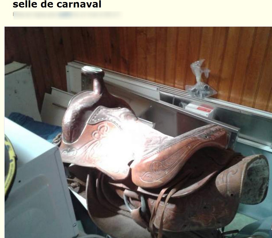 | Dire merci | Pour la selle de manège,il ne le marque pas mais le bois est mangé par les bêtes...."Ça peux se remplacer!" qu'il m'a dit! |