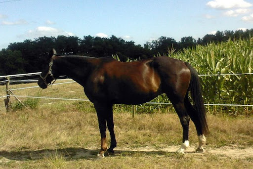 | Dire merci | Salut! Je viens faire un petit tour ici en tant que fan des trotteurs et heureuse proprio de Katia. Je me sens pas de lire les 109 pages du post, j'espère que vous m'en voudrez pas trop, hein... ![]() Un jour faudra que je vous raconte notre rencontre et l'histoire qui a suivi, mais ça risque d'être long... Enfin, si ça vous branche! A moins que je crée un post dans photo... En voilà une: L'antérieur gauche décoloré, c'est suite à un traitement avec nettoyage à l'eau oxygénée... Super... Pour répondre à Ninie 18, dans mon ancienne pension je couvrais Katia parce qu'elle était en paddock sans abri, qu'il a plu tout l'hiver et qu'elle avait froid. Maintenant, elle est en pré/boxe, donc terminé les couvertures. Enfin, normalement, elle en aura pas besoin, mais j'en ai gardé une au cas où... |