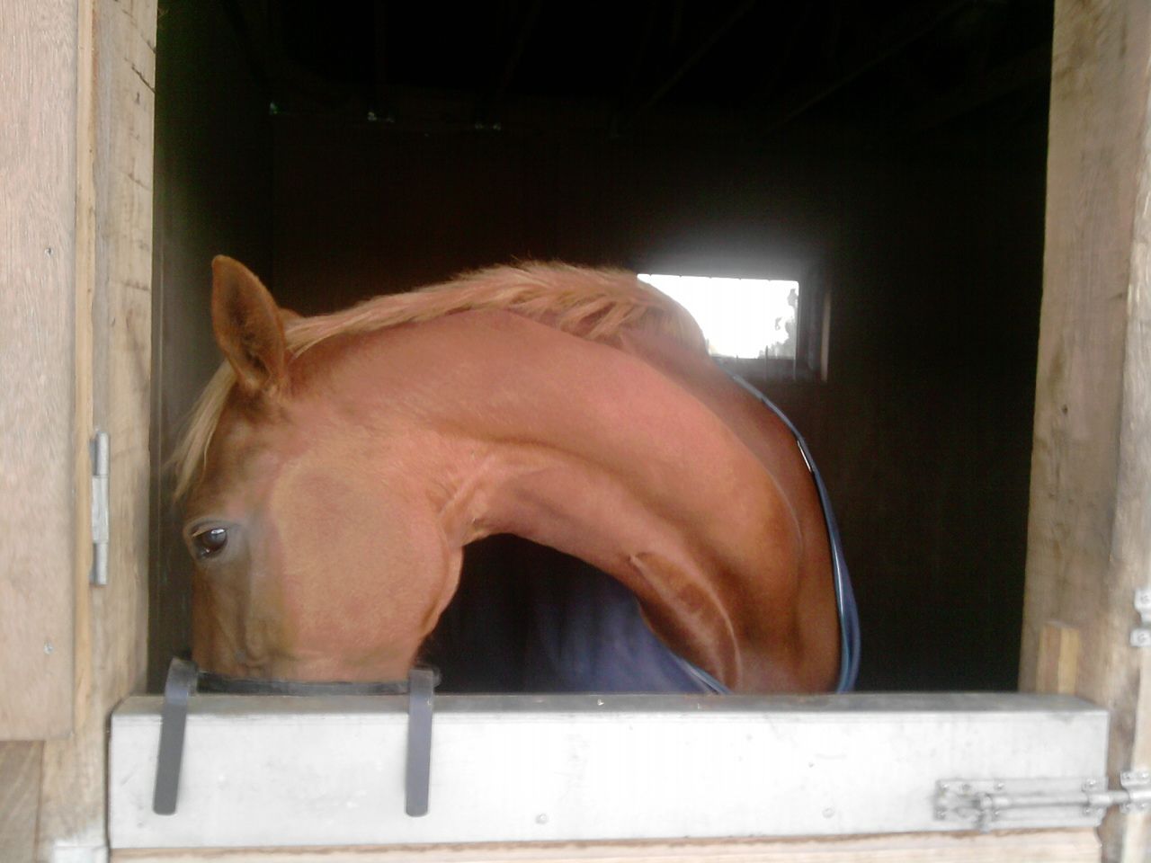 | Dire merci | je lui ai mis une cagoule pour essayer, vois si elle lui allez bien (enfin si elle etait de sa taille disons ... mdrrrr) c'est pour cette hiver - il fait tres venteux sur l'ile en hiver, et puis ... on est un peu comme la bretagne, il pleut regulierement en hiver ... bre, il aura pas froid dans son boxe ni dehors (quand il ne pleu pas biensure) avec cette cagoule ! loool roooh le pauvre quand meme... il a l'air ridicule.. vous inquietez pas, ces potes ne l'on pas encore vu avec ca ... on a fait ca discret dans le boxe, ces potes ont pas remarqué ... (je suis pas si mechante quand meme ! il a une réputation a maintenir !!! )Borane moi aussi j'aime son air coquin ... il a vraiment un regard qui tue ce cheval... ! bopn, je charge d'autres photos pour vous montrer sa criniere (oui ... j'ai pris des photos "normales" aujourd'hui .. j'ai pas été mechante... hehe |