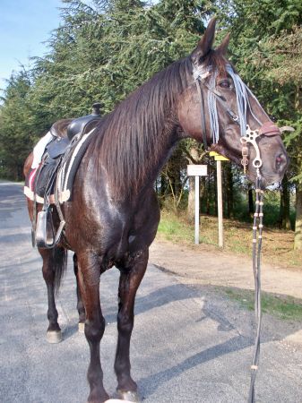 | Dire merci | ibéré a fait un peu de dressage aujourd'hui mr n'aime pas sa il m'arrachait les mains a chaques fois et un peu de saut mais pas tres haut car j'etais seule et on s'est jamais je vais en profiter car je suis en vacance cette semaine |