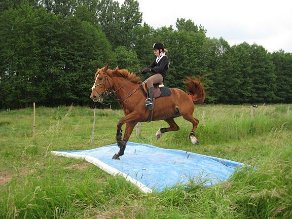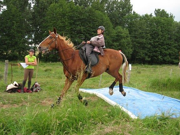 | Dire merci | Des nouvelles de Poupette après un peu d'absence ! (bah ouais j'ai enfin un job jusqu'à octobre )Nous avons fait notre premier cso en 60/80, 8pts car 2dérobades : l'un ou j'arrive désordonnée suite à un méga bond qui m'a surpris (cf photo de l'oxer) puis une ligne à 1foulée ou j'arrive en faisant BANZAIIII !! Donc niveau chrono pas de pbl à se poser, pas de barres, je suis très contente ! Après un peu de repos je l'ai remonté hier soir, pour sauter avant le TREC de dimanche. Nous avons sauté tout et n'importe quoi : croisillon, palanque, un bidon isolé, 3tous petits bidon de qlq litres, du vrai directionnel !! La tête verte suite à un drôle de bug de l'appareil ![]() A l'entrainement. ou d'ailleurs ou voit le bidon que j'ai sauté hier, sauf qu'il était tout seul dans la carrière sans rien autour ! ![]() |