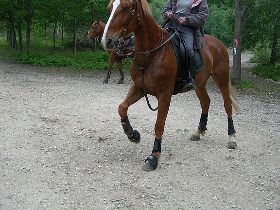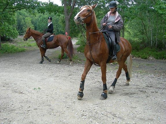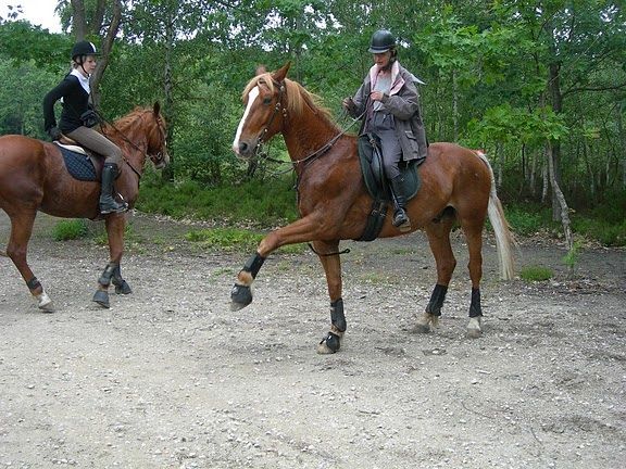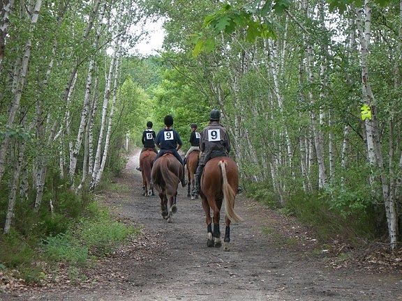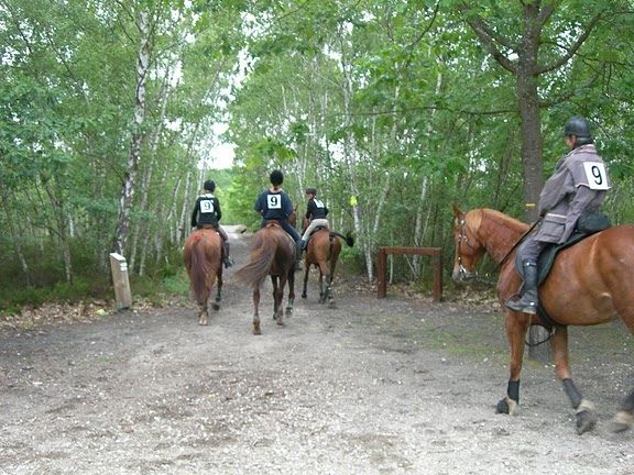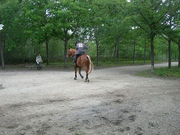 | Dire merci | Tout mimi le bel Orlando Des petites nouvelles du 1er Rallye organisé par la Cense dimanche (notre première participation également pour Nanton et moi). Nous étions 4 cavalières et nous sommes arrivées 3ème ! Nous aurions pu faire mieux pour les questions posées mais nous n'avions pas révisé le type de questions posées... comme sur les jeux Olympiques . Nanton m'en a un peu fait voir au début car évidemment il voulait être devant... dans la deuxième partie (l'après midi) qui était moins longue et surtout moins vive d'allure, il a accepté de rester derrière. En fait c'est juste quand il faut galoper ou trotter qu'il ne supporte pas d'être derrière. En plus c'était le seul garçon et les juments ont tendance à botter et j'avais peur qu'il ne prenne un coup de pied. |