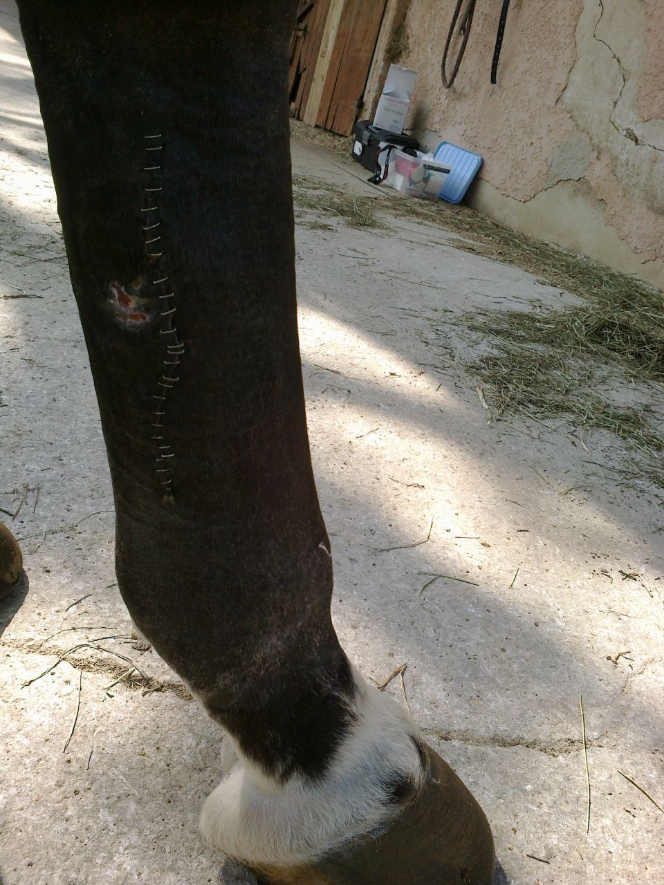 | Dire merci | Nestea13 : nous ne savons pas ce qui s'est passé mais la seule chose qui soit à peu près plausible c'est un coup de pied d'un autre cheval en prairie. Kix. |