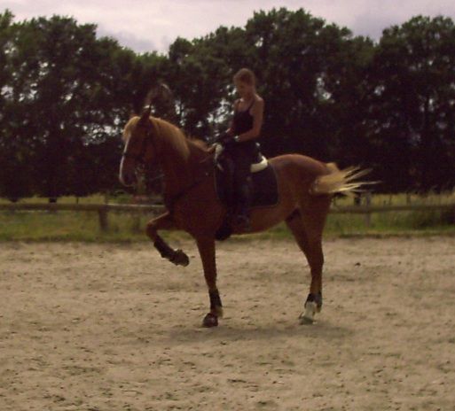 | en carrière et en extérieur elle le fait aussi. Disons que si on fait que du pas et du trot pas de souci mais des que tu lui demande 1 galop elle part comme pour gagner le 1er prix et des que tu repasse aux trot elle a du mal et à partir de là elle devient ingérable. A peine tu bouge ta jambe elle part au galop, elle n'écoute plus et elle se rebelle genre je me cabre ou bien j'essai de lever le cul. C'est simple elle ne veut que galoper encore et encore, même avec cette chaleur elle n'est pas épuisé! |