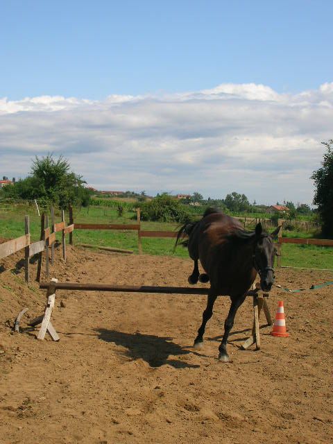 | Dire merci | je trouve que tu devrais le faire sauter en liberter, en mettant un couloir pour qu'il aille sur l'obstacle si besoin. il aurait une meilleure attitude au dessus des barres. la je le trouve un peu tordu quand meme ![]() surtout que tu as un rond de longe ou en tout cas une piste pas trop grande pour ne pas devoir courir partout ![]() |