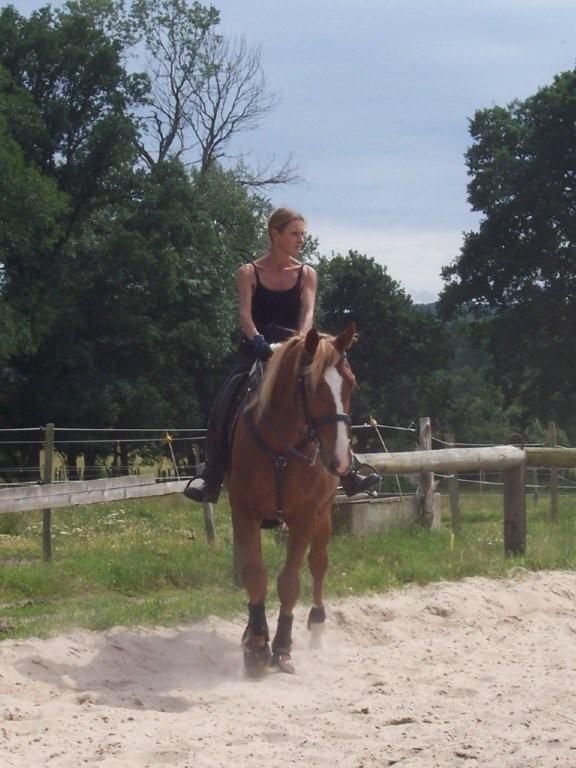 DéconnectéDire merci | Nimus --> J'ai récupéré Quoeur, il avait tout juste 3 ans et fait 2 fois 2 mois d'entrainement, pour en arriver aux même conclusion : boucherie... La nenette de l'association ou je l'ai eu a du batailler pour l'avoir, car il était sensé être de nature à être rond, donc à bien engraisser... Pathétique... pour le coup en plus, moi j'ai lutté pour l'avoir dans l'état actuel! Je pense qu'il n'a pas satisfaisait pas aux exigences des entraineurs car il galope... Deuxième fois sur son dos, il galopait.... pas vite et brouillon... cool, posé! La séance d'après il répondait aux aides... et 3/4 mois après son arrivée on partait de l'arrêt... Là il m'a fait ça nickel en amazone, du cote ou y'a plus la jambe à reculer! A l'exter, en carrière aussi... il est aux manettes... Franchement il est épatant, et j'essai de rester objective! Je n'ai pas un grand niveau, et j'ai la chance de tomber sur un trotteur "tout facile" à remettre au loisir! y'a encore du boulot évidemment... |