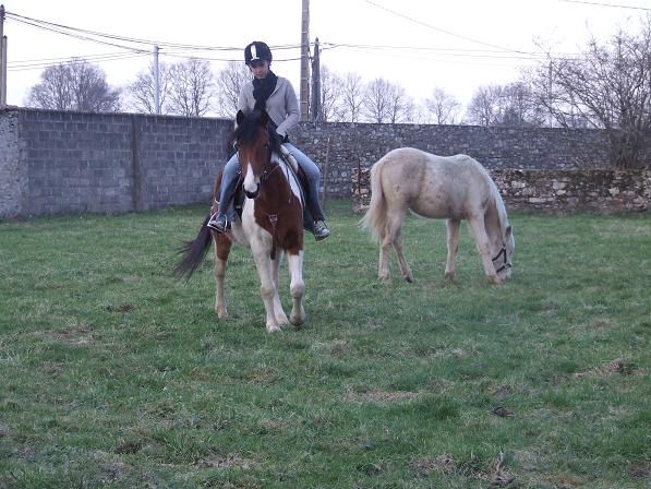 | Dire merci | ho, le mini trotteur pie!!! de mon coté,ca fait seulement depuis aout que je vois mon cheval tout les jours ( avent j'etait dans l'aveyron et lui ici, chez mon pere ). donc, niveau complicité ya du travaille a fair, encore, mais c'est un cheval que s'en remet facilement a l'homme . quoi que ces temps ci, ( depuis que je remonte doucement) il est un peu plus proche de moi a la la, c'est fou la place qu'il a pris en si peu de temps |