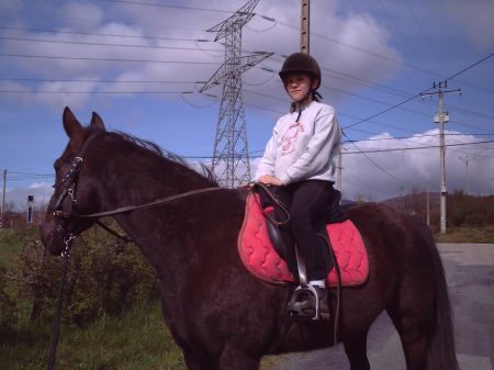 | Dire merci | ![]() Voici ma "lolo" d'amour achete il y a deux semaines je vais la chercher mardi matin (trop pressee!) elle s'appelle Huelva de Bel air rebaptisee Lolita par c'est ancien proprio.Elle a 12 ans et bien sur c'est un trotteur. Tout l emonde m'a deconseille un trotteur mais moi je suis trop heureuse!!!!! |