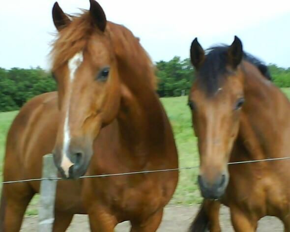 | Dire merci | C'est vrai soso nous a fait une belle frayeur samedi. Je l'ai vu hier, il va beaucoup mieux. Il est retourné dans son ancien près pour se refaire une santé. Bon voici une photo de mes loulous, Manissieux et Perle ![]() |