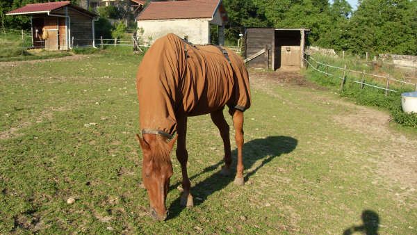 | Dire merci | Le mien je dois avouer qu'il s'en sort super bien cette année. Enfin j'y ai mis le prix : couverture Boett depuis qu'il se gratte, et ça va beaucoup mieux. Pour hydrater sa peau et repousser les moustiques je mets de l'huile d'olive dans laquelle je fais macérer principalement de l'ail. La couverture est toute grasse et son crin aussi, mais il n'a jamais eu la crinière si longue...![]() |