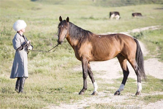 ) vivent dans des conditions extrèmes, à plus de 3000m d'altitude. Le peuple Tcherkesse dont la culture est très liée aux chevaux, leurs "petits frères", les a selectionnés pendant des siècles pour leurs aptitudes sous la selle et leur endurance. A present ils se démènent pour sauver cette race aux qualités exceptionelles. Ce sont des chevaux qui ont gardé les qualités d'ancètres froids (mental, rusticité, courage, très porteur) et d'ancètres orientaux (endurance, physique). Leur vie en altitude leur a apporté un système cardio vasculaire hors norme, d'ailleurs l'un de ces chevaux est monté jusqu'au mont Elbrouz à plus de 5000m.