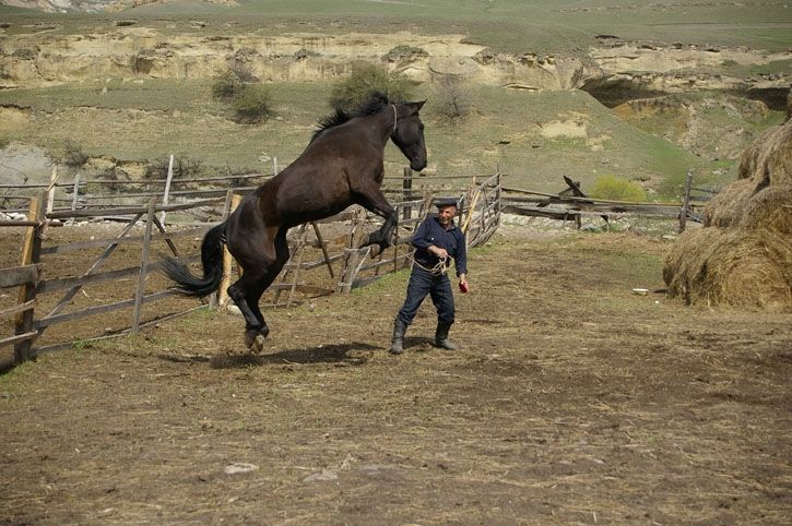 ) vivent dans des conditions extrèmes, à plus de 3000m d'altitude. Le peuple Tcherkesse dont la culture est très liée aux chevaux, leurs "petits frères", les a selectionnés pendant des siècles pour leurs aptitudes sous la selle et leur endurance. A present ils se démènent pour sauver cette race aux qualités exceptionelles. Ce sont des chevaux qui ont gardé les qualités d'ancètres froids (mental, rusticité, courage, très porteur) et d'ancètres orientaux (endurance, physique). Leur vie en altitude leur a apporté un système cardio vasculaire hors norme, d'ailleurs l'un de ces chevaux est monté jusqu'au mont Elbrouz à plus de 5000m.