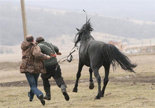 | Dire merci | bon aller maintenant je place des photos qui brisent un peu le mythe... histoire de ne pas croire que tout est tout rose ni de faire croire qu'on le croit (allusion a un autre forum). un (je suppose) debourrage au Caucase (je ne dis pas que c'est une generalite hein ? mais j pense que c'est bien repandu ) Il faut preciser que les chevaux sont souvent completement sauvages car eleves en montagne en troupeaux. ![]() |