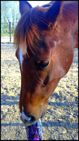 | Dire merci | aujourd'hui, UNE heure rien qu'à nous pour câlins, décrassage et papouillage en règle. Ca peut sembler risible de s'extasier pour une simple heure mais pour moi, c'est énorme. Depuis la naissance de mon p'tit bonhomme, je ne pouvais voir mes gros que qq minutes au vol. Aujourd'hui, on s'est retrouvé, mon gros et moi et... ça m'a fait un bien fou. Vingt kilos de carottes au sol et un Abalone qui a préféré venir près de moi, tout près de moi pour des câlins, des soupirs, des secrets à échanger... On se retrouve, mon gros et moi, on se retrouve ![]() ![]() et parce que je pense m'être trompée sur sa taille... je mesure 1m56... il n'a pas le m50 au garrot, c'est pas possible... à votre avis ? ![]() ![]() alors, vous le trouvez comment ? sachant qu'il aura 3 ans le 27 mars ![]() ![]() |