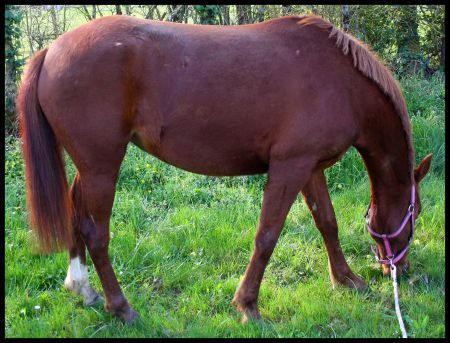 | Dire merci | Jolie la petite rousse. Nous on bosse pas mal en ce moment. Pour la longe je fais max 20 minutes et souvent moins, parce que c'est acquis, donc j'insiste pas trop. Sinon on fait de longues rênes, du travail en main, promenades en main et du travail en liberté, mais bon on se couche pas, on travail plus classique le reste je sais pas faire, mais j'aimerais trouver un stage pour approfondir. Donc on avance et on essaye des truc en attendant que monsieur s'élargisse et que je perde du poids. A mon avis à nous deux je ne vais pas monter dessus avant 6 mois et encore. |