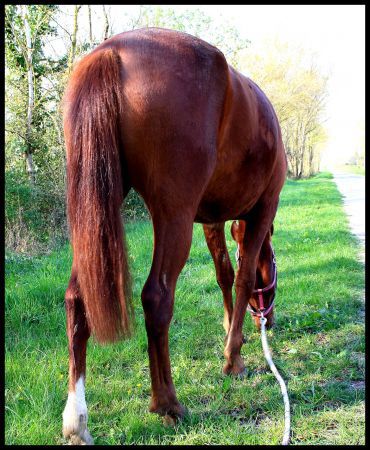 | Dire merci | moi aujourd'hui une bonne aprem boulot a la longe d'ulane (pcq en liberté elle court après les mottes d'herbes ds la carrière ) d'une dizaine de minute puis montoir avec sa dp, d'abord en sac a patate puis en selle completement, tenue par moi.Elle n'a pas fait de coups de dos mais puree elle essayait de chiquer la saloupiote ! elle est en chaleur, plus la contrainte du poids a mon avis .... GNIAK ! dediou !! Sinon troisième séance de LR avec usoa qui m'a fait un démarrage au galop au lieu du trot ... du coup ai du lacher tout ;.. puis elle s'est bien comportée et elle comprends les codes d'allures ET la direction ! ça avance doucement quoi ![]() (et jaurai des photos fin de weekend, la suis overbookée ) |