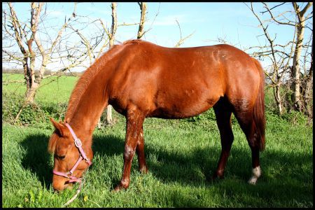 | Dire merci | l'éternel question de la castration... ![]() moi pas de prise de tête, comme toi tropchoutoi, j'ai des juments ! remarque j'aurais eu un male, il aurait été castré à 1an sans état d'âme ! ![]() sinon miss Umina glandouille au champ, je pensais la remonter un peu (1ere fois chez moi!!!) mardi, mais en fait elle a 2dents de loup que je fais enlever samedi, du coup 15j sans mors... quelque part je suis presque "contente" qu'elle ait des dents de loup car elle n'aimait vraiment pas du tout son mors pour le peu qu'elle l'ait eu, machait beaucoup, secouait la tête, se mettait en défense et passait sa langue par dessus... du coup j'ai bon espoir qu'une fois les dents enlevées elle se comporte bien mieux si j'ai le courage, mardi je monte en side !!! |