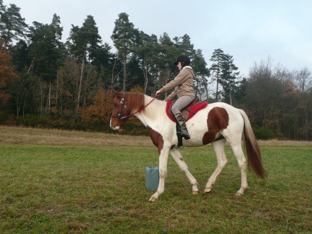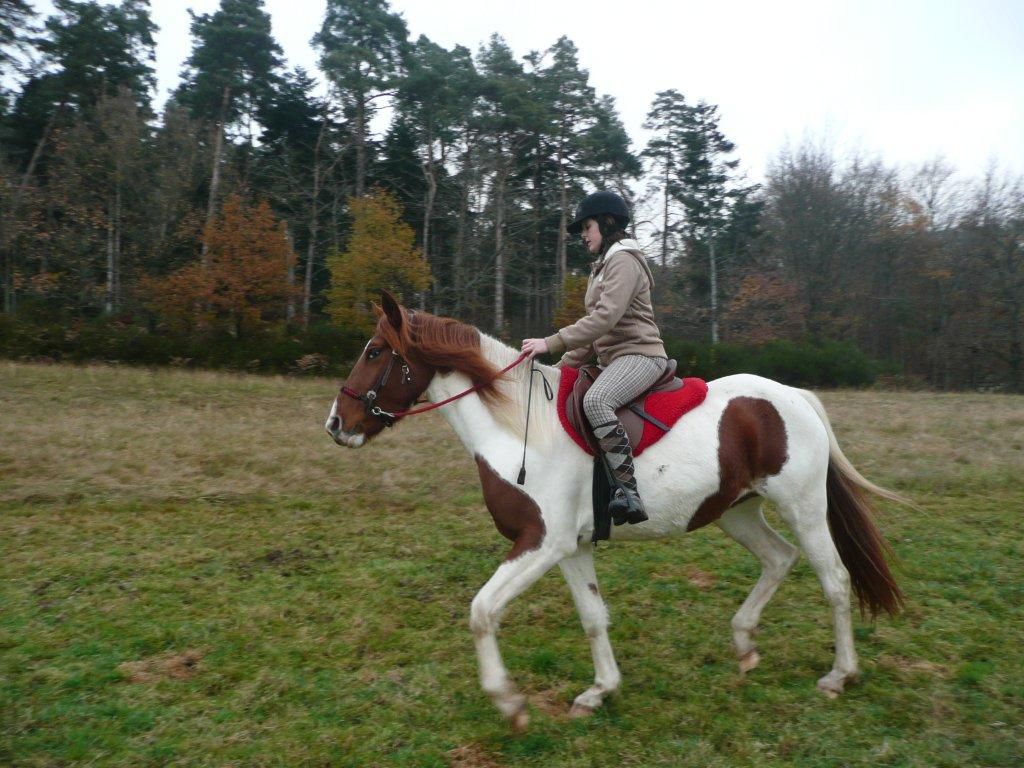 | Dire merci | Hier pour usoa, super séance dans la piste, avec le mors pour des cessions de mâchoire : concluante, jai eu le bout du nez quelques fois, super !! Puis auj sortie d'une heure au pas, moi à cru (la selle ne convient pr l'instant plus) et ulane sellée ... ulane hyper motivée, bien dans ses pieds (merci la pluie qui a rammoli les sentiers !) qui avait du coup un bon rythme ! Et usoa, si on met entre parenthèse son irrésistible envie de draguer a tout va les petits nouveaux du groupe de la ballade d'auj ... elle a très bien été ! je mettrai deux photos prochainement ici sinon tt sera sur leur poste ![]() |