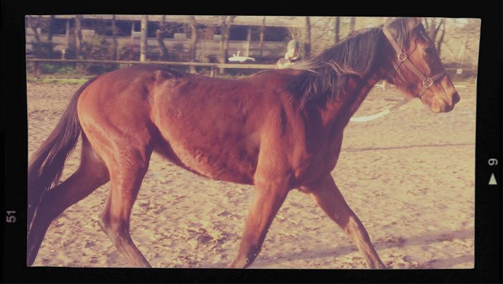 Je suis allée voir Uranus cet apres midi, presque 1 mois que je n'avais pas pu aller le voir et j'avais decide de le remettre un peu au travail à la longe! J'ai été agréablement surprise car c'est la première fois que je le longeais et il a appris super vite! J'ai fait juste 2 tours à chaque mains au pas & 1 tour au trot puis je l'ai laissé la dessus Par contre très mauvaise surprise concernant son état... Les chevaux auraient déja du changer de pré depuis un moment sauf que toujours pas, donc ya plus grand chose à manger & il ne sont pas complementer au foin... Voila Ura ya 2mois: