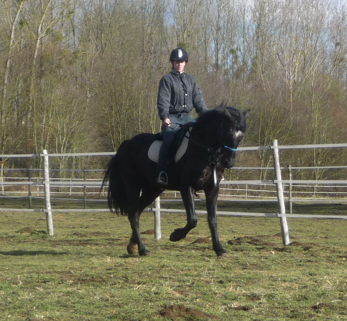 Je pense à partir de maintenant lui faire 2/3 séance en selle de 10/15 mn par semaines en plus du travail à pied . Bon là hier on s'est cantonné au rond de longe au cas ou il chaufferait , j'agrandirai l'espace de monte au fur et à mesure des séances quand on sera en confiance l'un et l'autre . Je suis contente