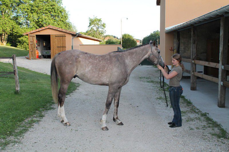 | Dire merci | Super cet balade! Et Kagnotte j'adore ton side! Hat de voir les suivants!! Ici ca y est, Ura s'est fait à son nouvel environnement et s'est déja fait un copain! Un U comme lui. Quand je suis arrivée ce matin ils mangeaient leur foin ensembles Sinon il est juste énorme c'est l'horreur.. 1 mois de repos à cause de mon accident et il en a bien profité! Donc ce matin longe! 10min à chaque main avec beaucoup de transitions, il a écouté comme un grand!Ensuite mon homme l'a paré devant, on fera les posterieurs demain, puis retour avec les copains.. Photos du loulou au boulot.. ![]() Ura tout gras... ![]() ![]() Par contre, voila l’attitude qu'il prend le plus souvent.. Je n'étais pas trop pour mais je me dit que finalement, je lui mettrais bien à la longe des élastiques éducatifs.. Pas de montées ou descentes prononcées la où je suis et pas de barres à disposition |