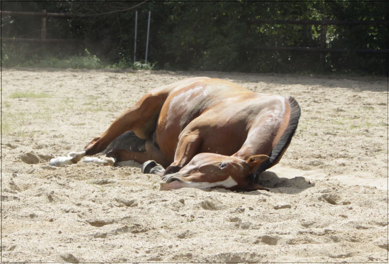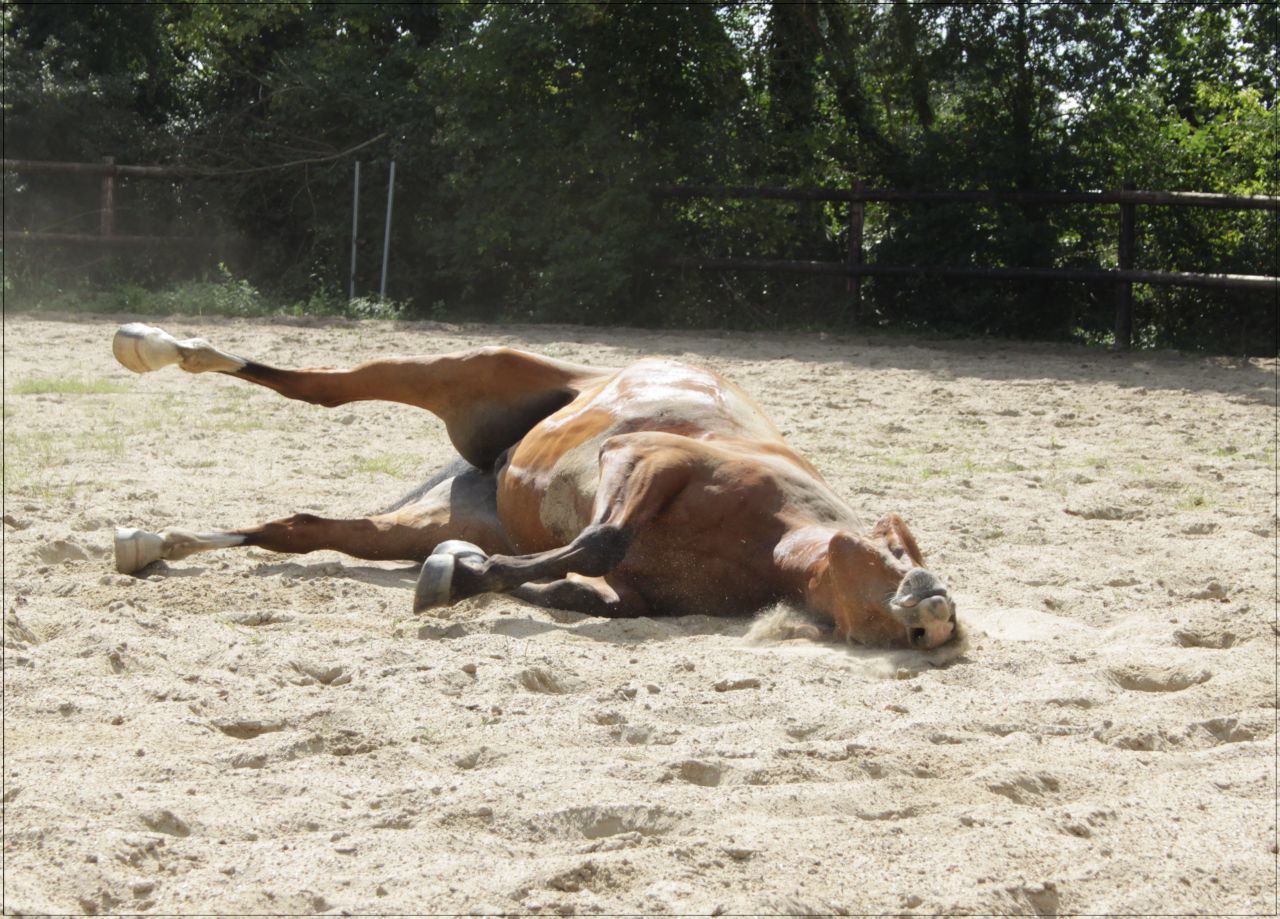 | Dire merci | et puis jeudi dernier une autre 1ere pour nous !! Monter avec un autre cheval (celui de ma soeur) , on à commençait en carrière d'abord pour voir sa réaction, il était tendu au départ et ne savait pas trop quelle réaction adopté "face" à s'est autre congénère qui tournait avec nous ... puis il s'est vite relâché et ensuite nickel ! De ce fait nous sommes parti ensemble en balade dans les champs et ce fut un moment très agréable, on à tenté le trot ET le galop progressivement, nickel il n'a pas cherché à faire le kéké ou à faire la course . A l'entrée d'un champs rempli de round celui de ma soeur ne voulait pas rentré (il à 7ans et du métier derrière lui) c'est mon BB qui à fait le passage pour le routinier ! Trop fière ! Quelques photos au retour de balade car personne pour nous suivre dans les champs forcément ![]() mon air ravie qui ne dément pas ![]() ![]() puis roulade dans la carrière cha fait du biiien ! déjà au début quand j'étais en selle il à failli se rouler, juste eu le temps de le mettre en avant ... il adore le sable ! du coup au retour je lui ai fais ce plaisir ! ![]() il s'en aie bien étalée partout y compris sur la tête ![]() je suis fan de mon cheval ![]() ![]() voilouuu Maintenant qu'il est à de bonnes bases le mois prochain on commence les cours avec mon instructeur pour commencer gentiment la mise en route du travail ![]() |