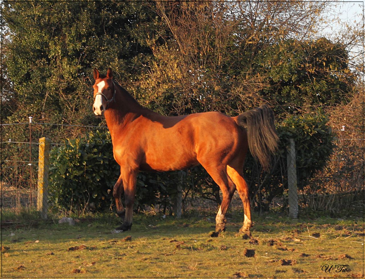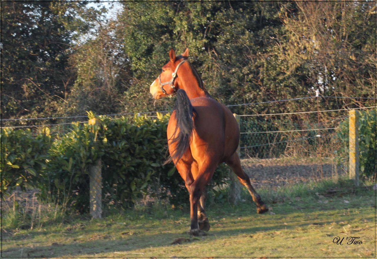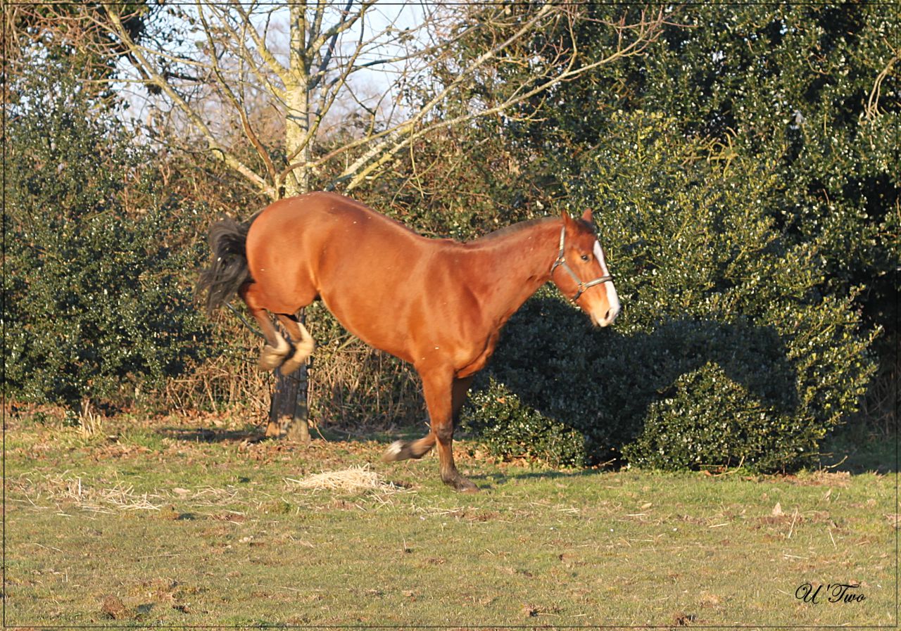 | Dire merci | après 2 mois de glandage HIER j'ai ENFIN pu remonter mon U !!! Bon c'était festif, j'ai longé une première fois ou il était plutôt zen, je monte et là mon oncle débarque avec un engin agricole ... je le sens monter en pression, queue sur le dos et ronflé en "crachant des naseaux " comme un dragon .... oups je me dis "ça va pas le faire" , je mets pied à terre illico, pas suicidaire la fille ... et je le remets en longe , quelle bonne idée j'ai eu , il à pétaradait dans tout les sens de manière encore fulgurante (je ne me voyais pas tenir sur de tel ruade) je l'ai laissé jeté son jus et s'habituer au vacarme de l'engin de mon oncle puis j'ai finis par remonter 10mn ou il était encore un peu tendu mais moins . Aujourd'hui SUPERBE soleil , ZOU je remets le pied en selle, petite longe avant, il à été extra ! ![]() |