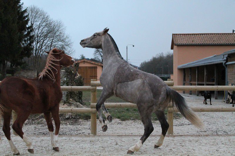 | Dire merci | genepi : Nabil saute très bien en liberté, avec envie, et juste ce qu'il faut. Bon il s'enmele avec les foulées devant mais en général il compense par un saut + ou moins long. ça y est j'ai remonté la bète bon pas folle, en carrière Je l'ai senti bien exité avant meme que je sois dessus. Alors une fois dessus j'ai tout de suite mis les points sur les i. Pas de conneries mais des tentatives ( subitement il a decouvert les canards ...) mais il a bien bossé. On reprend le travail mis en place lors du dernier cours debut janvier soit les cercles en étant sur la main et engagé avec extension d'encolure sur les longueurs de carrière et les cercles avec allongement du trot sur les longueurs de carrière.Prochaine etape la sortie en exterieur dimanche s'il reneige pas ![]() |