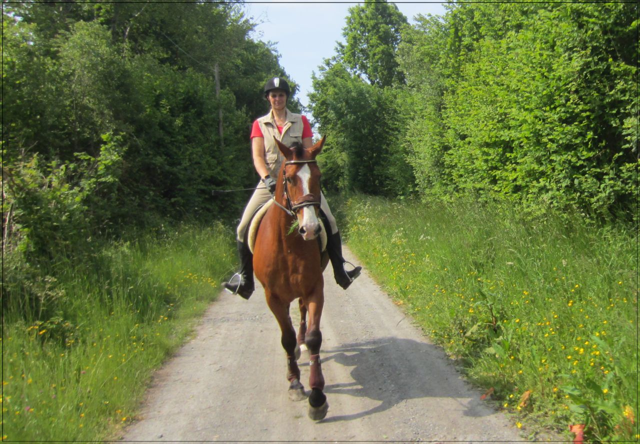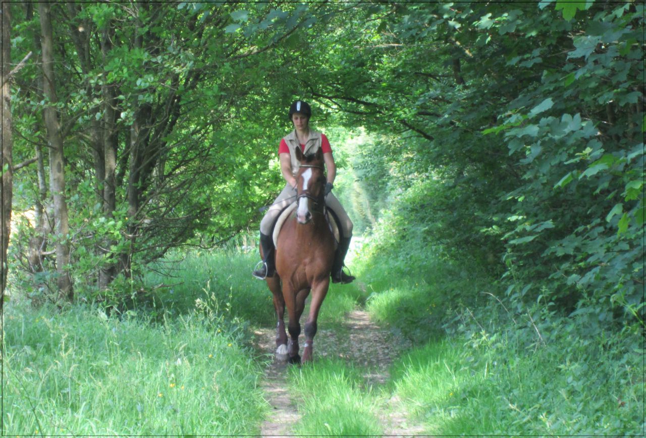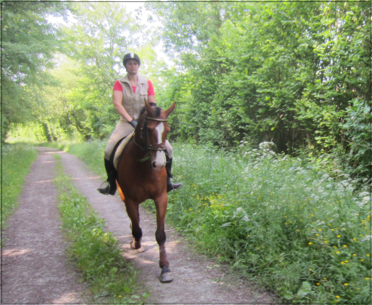 | Dire merci | Je reviens d'une balade à poney !! Encore une super sortie ! On est passé devant, derrière, attendre le copain qui nous rattrape sans s'impatienter une seule fois. On a est parti au galop tout seul pendant que le copain attendait, on a aussi testé à un autre moment de partir au pas et retour au galop vers le copain. Nikel, il se sépare très bien du copain et rejoint sans chauffer. Au retour, on a pris le chiot de ma copine à cheval avec moi sur Diego! Bon là ma copine nous a tenu quand même au cas où parce que je dirigeais plus rien lol! Bref, encore une sortie qui me remotive à monter mon cheval encore plus! Il est vraiment extra en ce moment! Pour le moment nous c'est 2 à 3 sorties par semaine et on va essayer de respecter ce rythme. Punaise, trochoutoi: une fourbure pourtant elle est pas grosse ... Bon rétablissement à elle! |
