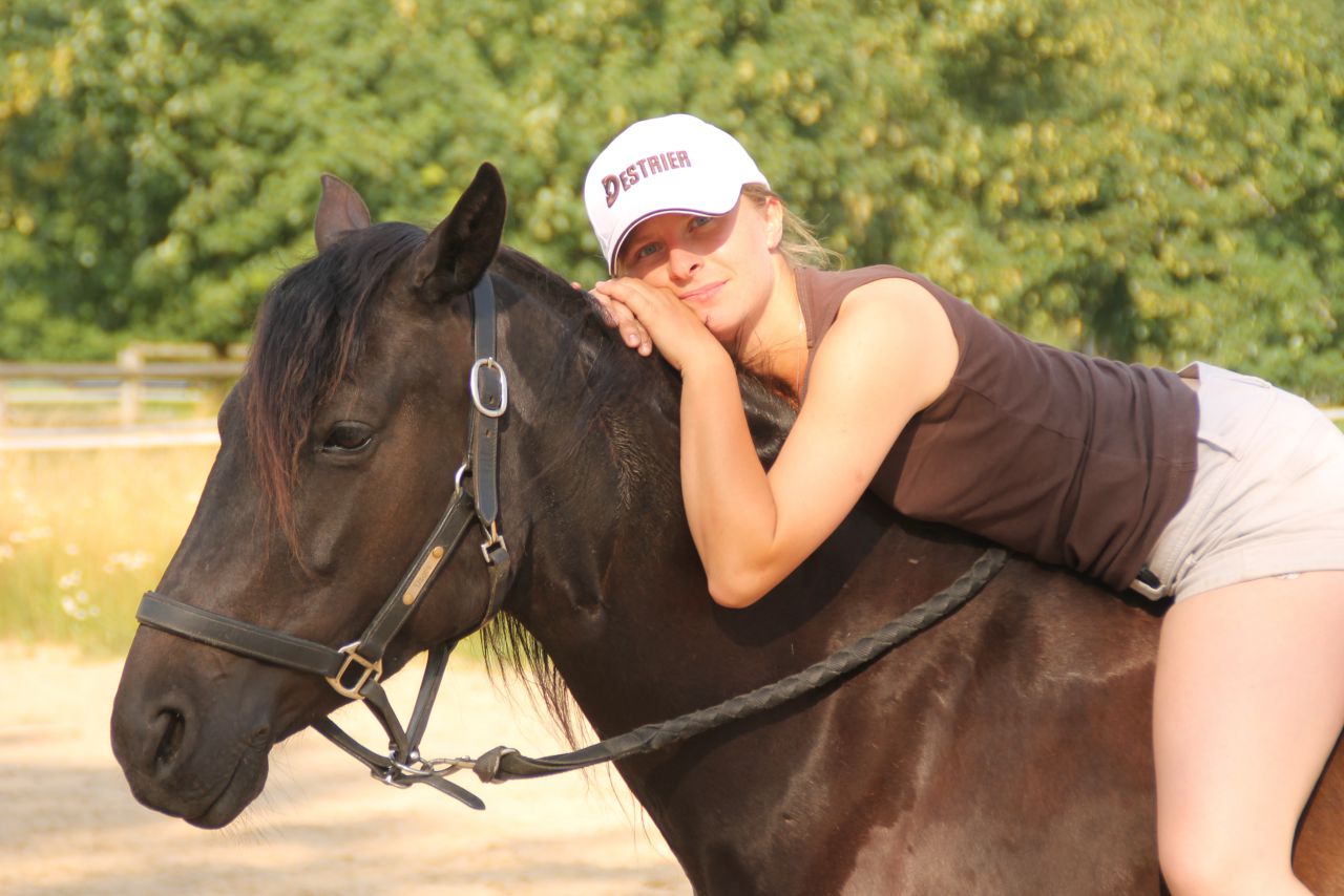 | Dire merci | C'est génial d'avoir des photos, pour nous et pour toi !! Qui est ton photographe Arwen ?Je rêverais qu'on me filme, pour voir et (espérer...) corriger des défauts mais je n'ai personne. Par contre là où je suis super contente c'est qu'une des filles qui monte avec moi les samedis a acheté sa jument de club préférée, du coup on est 2 proprios, et en plus avec cette météo géniale, ça me motive à sortir ma belle les soirs après le boulot (quand il fait moins chaud en plus) Et au moins, en balade, comme elle a quelqu'un devant, elle avance un peu mieux, car c'est vraiment son gros point faible en été : elle est molasse ! Sauf le PTV : ça, ça l'éclate toujours !! |