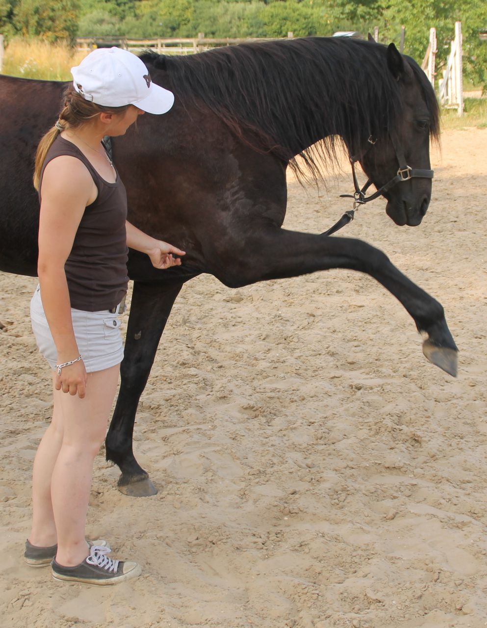 | Dire merci | Ouai les taons sont justes énormes et coriasses .... Les chevaux sont quand même très courageux ... Samedi matin nous avons eu notre 1er cours avec notre nouvelle prof (la prof de ma "prof" lol!)!! 1er cours en longe avec la prof qui s'occupe de tout. Ce 1er cours est surtout là pour juger de la morpho: points forts/faibles et du travail à mettre en place. Pour Diego: une morpho très agréable et qui avec un peu de travail pour faire fonctionner correctement tout ça me donnera un petit cheval fonctionnel et polyvalent sans défauts particuliers! Donc nikel! Pour le moment: encolure à la retourne il était grand temps de la faire venir! et une nuque très forte et trop musclée donc raide ... Mais vu sa morpho elle se fait pas de soucis en l'orientant correctement qu'il fonctionne bien par la suite. Niveau mental: un cheval enfermé qui demande à être constamment guider et en activité, seulement un cheval enfermé, qui subit sans s'exprimer ... Bref, on va essayer de lui redonner de la joie de vivre et qu'il s'exprime et partage au boulot et plus subir en silence! Je pense avoir trouver une très bonne prof qui nous conviendra autant à lui qu'à moi je suis ravie! Le seul bémol juste un cours par mois ............. ![]() |