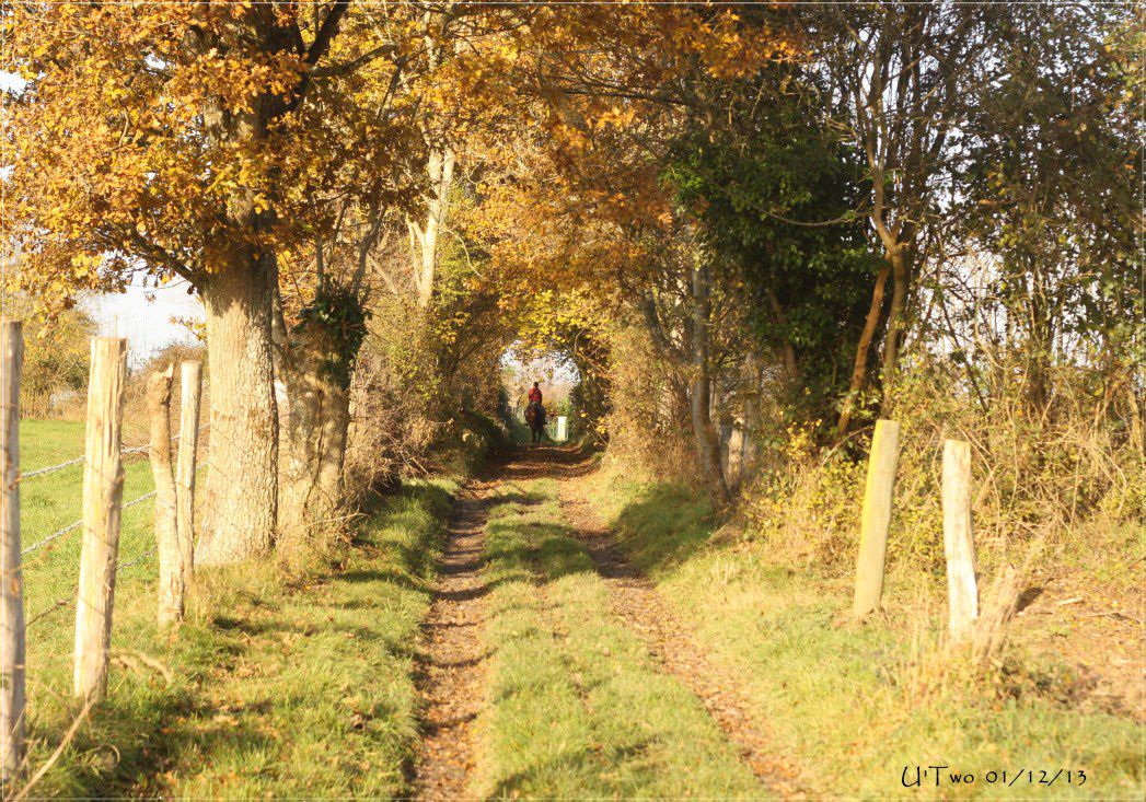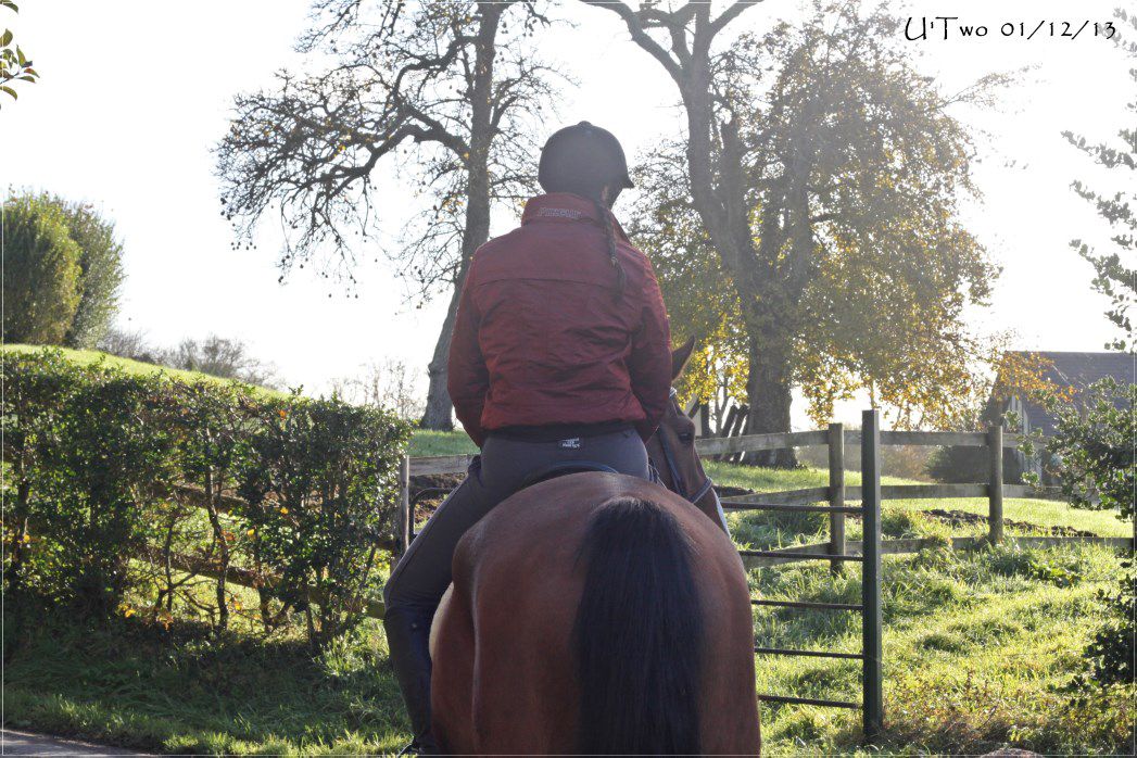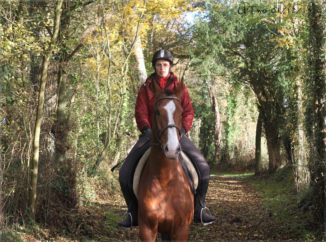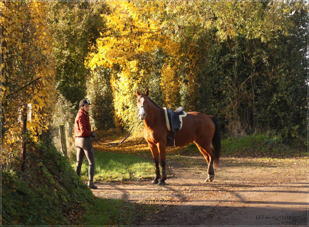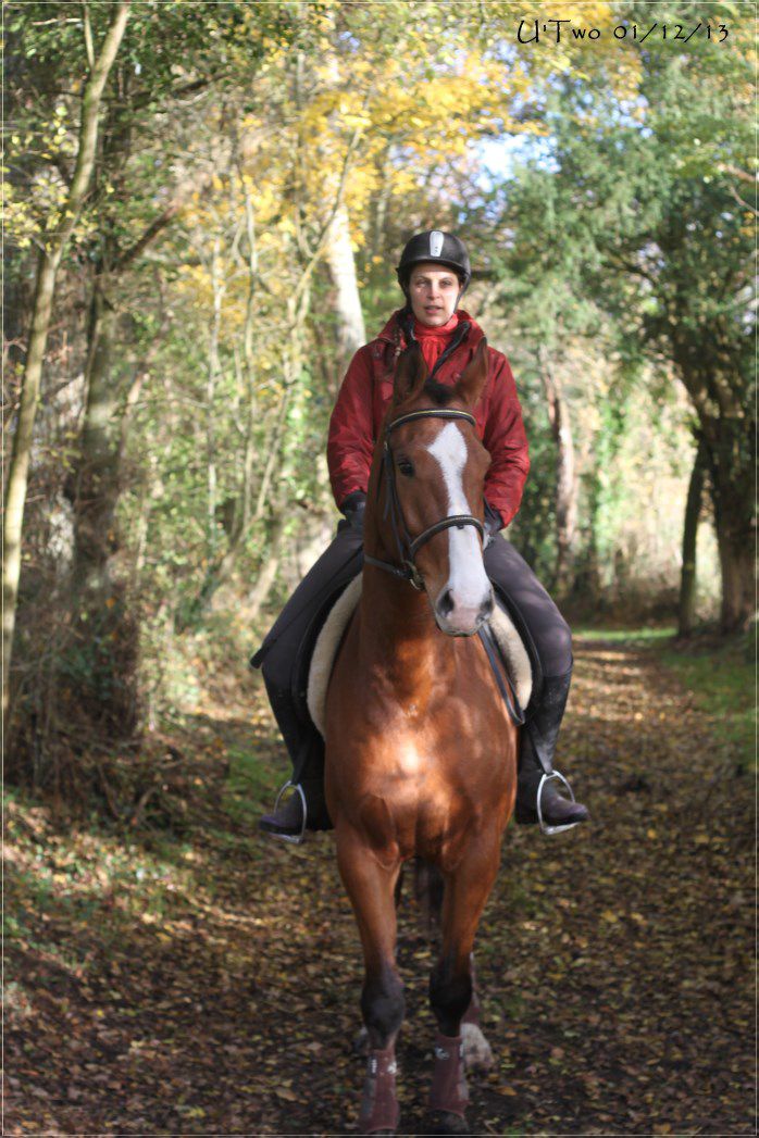 | Dire merci | J'aime les balades s'automne, U'two j'adore et il te va vraiment bien. Nous aujourd'hui reprise des cours pour le blondinet, et il avait la patate, je suis allée là bas à pieds, pour le ménager et pour faire un peu d'exercice aussi. Mais quand je suis montée dessus et bien il était guilleret, un vrai plaisir de le voir comme ça. Bon j'ai un autre cours jeudi, je prendrai Vaïna pour ne pas lui en coller trop d'un coup, lui ce sera balade mercredi. |