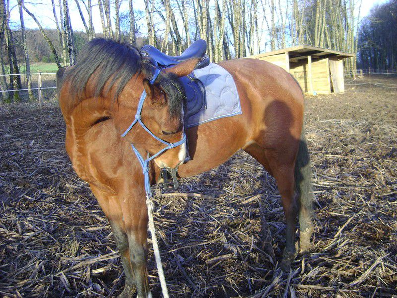 sinon moi je comprends plus rien... ce matin j'ai fais déferré Umina des postérieurs pour son potentiel départ en pension vu qu'elle serait avec un jeune d'1an, et puis un peu de soleil donc j'ai eu une lubie et zou la selle et je suis partie faire une mini balade au pas avec ma belle (3mois sans sortir ça lui pose aucun soucis ça s'est vraiment tip top !!! )