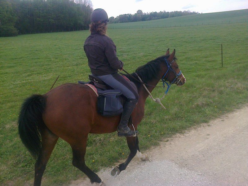 | Dire merci | génial, tu dois etre contente de remonter dessus Nabil a été.... ben Nabil en ce moment.... un écart, sursaut toutes les 5min... et surtout la dernière demi heure il s'est mis à chauffer je sais pas trop pourquoi. Et il s'est vexé sur quelques désaccords entre nous Bon au bout de 7h, il est partit au grand galop dans son parc à peine lâché |